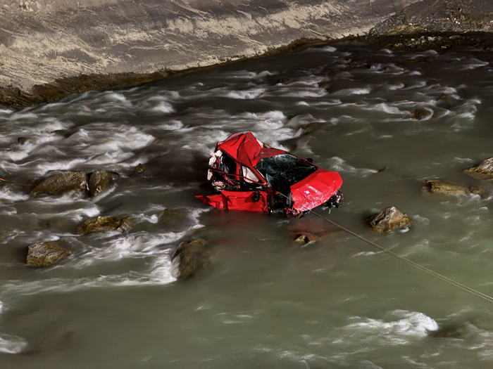 Kent girişindeki Seyir Tepe mevkisinde S.E.D. idaresindeki plakası öğrenilemeyen araç, yaklaşık 250 metrelik uçurumdan Zap Suyu'na düştü.