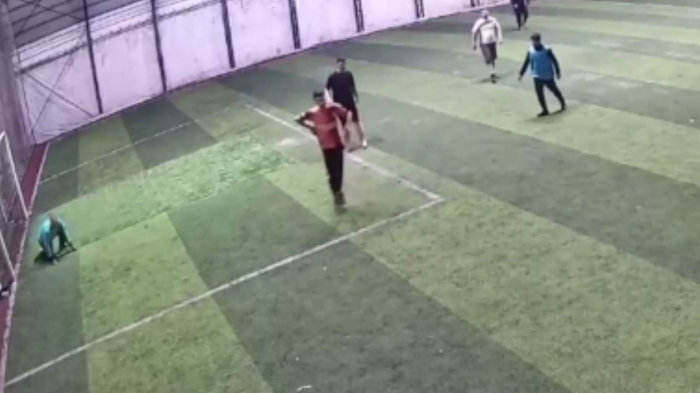 Olay, halı sahanın güvenlik kamerasınca kaydedildi.