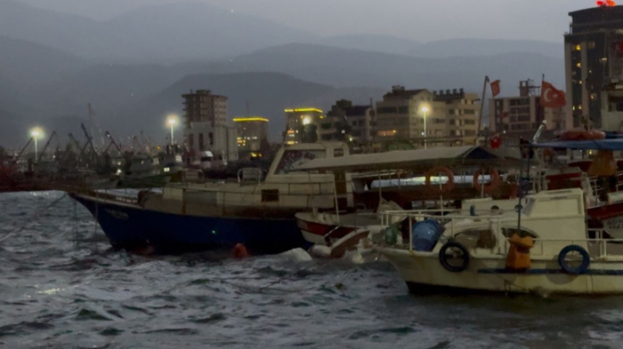 Hatay'ın İskenderun ilçesinde etkili olan şiddetli fırtına, balıkçı barınağında büyük hasara yol açtı. Fırtınanın etkisiyle 5 tekne ve 1 yat alabora olurken, devrilen tekneler vinç yardımıyla tek tek sudan çıkartıldı.