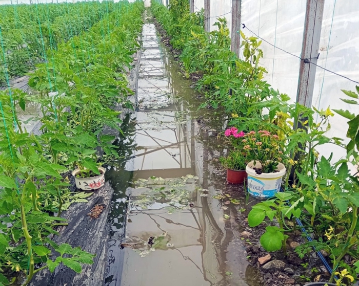 Okçular Mahallesi'nde tıkanan kanallardan taşan sular tarım arazilerini sular altında bıraktı.