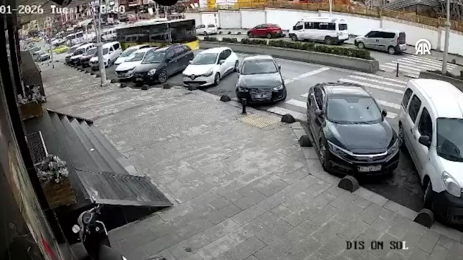 Kaza anı çevredeki bir iş yerinin güvenlik kamerasınca kaydedildi.