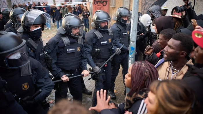 Katalan polisi (Mossos d'Esquadra) ve İspanya Ulusal Polisi tarafından sabah saatlerinde başlatılan tahliyede, göçmenler ile güvenlik güçleri arasında zaman zaman gerginlikler yaşandı.
