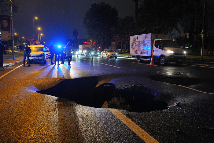 Cadde üzerinde yaklaşık 3 metre derinliğinde, 6 metrekare genişliğinde bir çukur oluştu. Gece boyu etkisini sürdüren ve yer yer sellere neden olan yağış nedeniyle meydana gelen çökme sırasında seyir halindeki ticari taksi çukura düşmemek için ani manevra yapınca ters dönerek takla attı.
