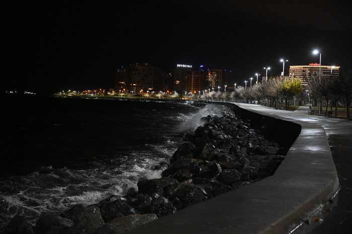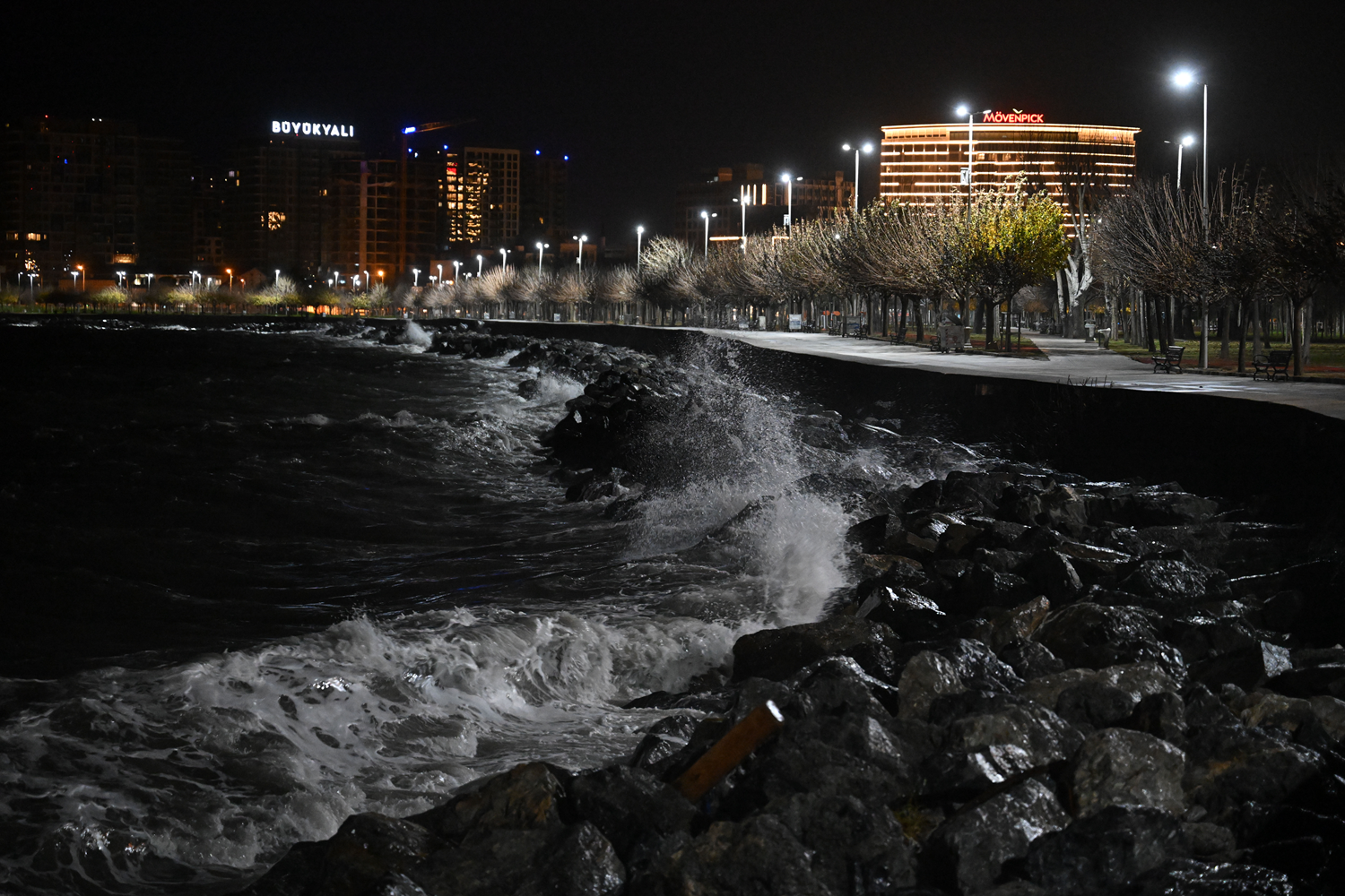 İstanbul'da gece saatlerinden itibaren başlayan şiddetli lodos ve fırtına sahil kenarlarında etkisini artırdı.