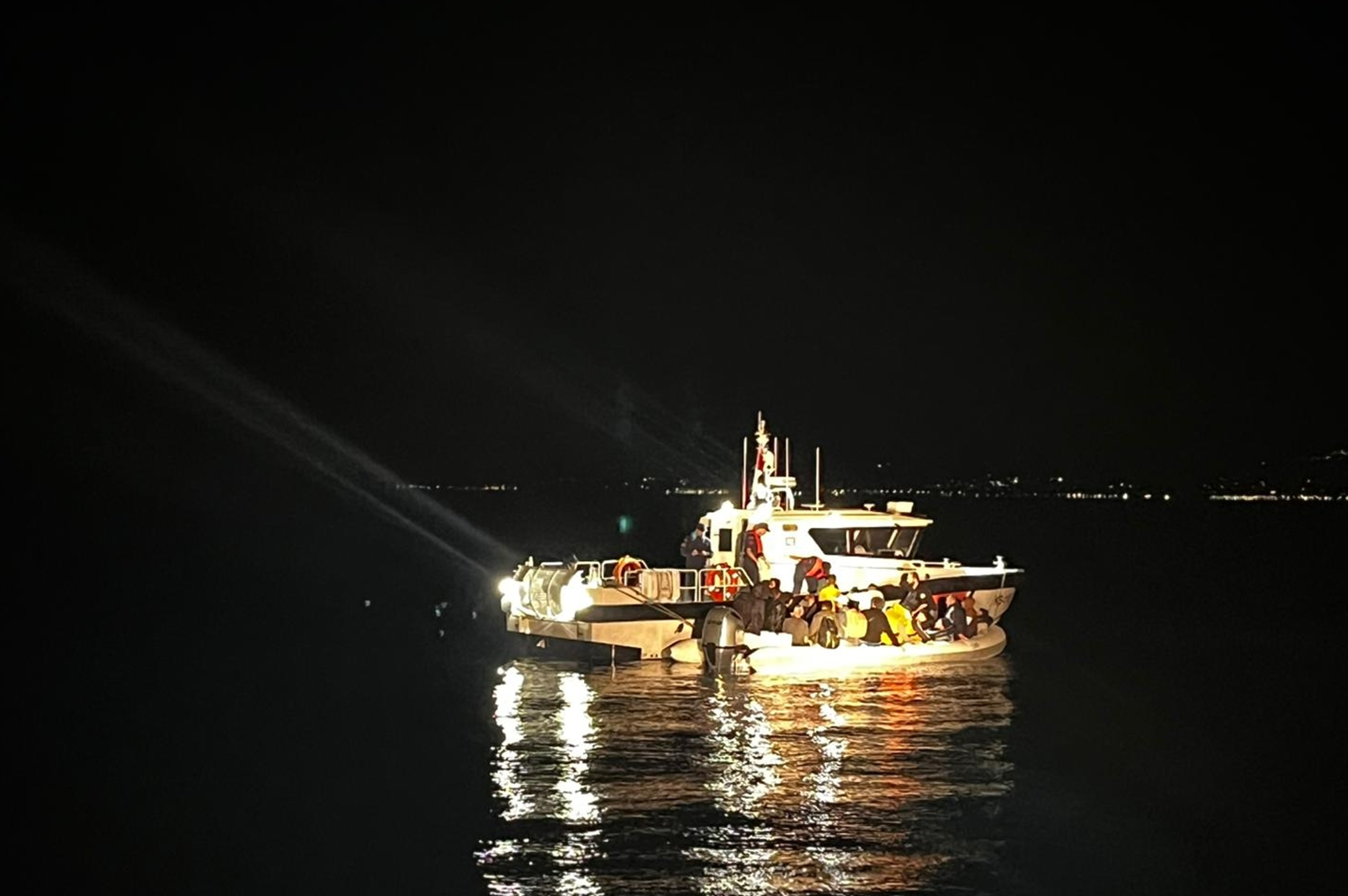 Yunanistan unsurlarınca Türk karasularına geri itilen lastik bottaki 7'si çocuk 35 düzensiz göçmen kurtarıldı.