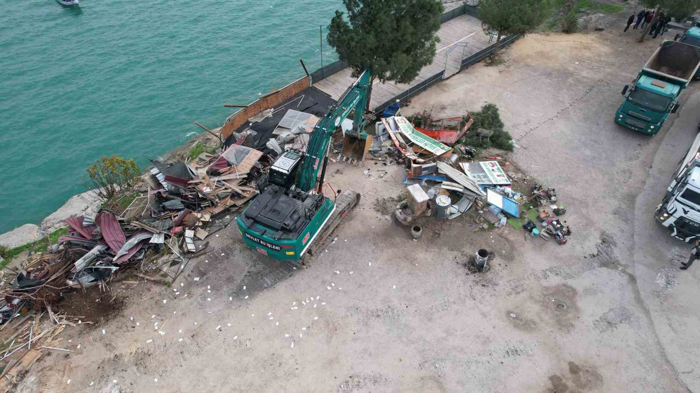 Polis tedbirleri arasında Devlet Su İşleri'ne (DSİ) ait kepçelerin adaya girmesiyle birlikte gerginlik başladı. Bazı esnaf yıkıma tepki gösterirken, bir vatandaş bıçakla kendine zarar vererek polis ve iş makinelerinin alana girmesini engellemeye çalıştı. Polis ekipleri, kendine zarar veren kişiyi etkisiz hale getirerek gözaltına aldı. Bazı iş yeri sahipleri, yıkımı protesto edip iş yerlerini ateşe verdi. Çıkan yangın itfaiye ve TOMA tarafından söndürüldü. Polise direnen kişiler ise gözaltına alındı.