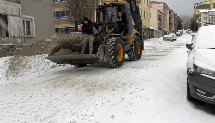 Belediye ekipleri kent genelinde kar temizleme çalışmalarını sürdürüyor.