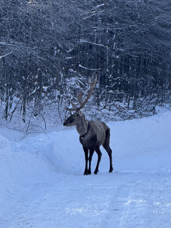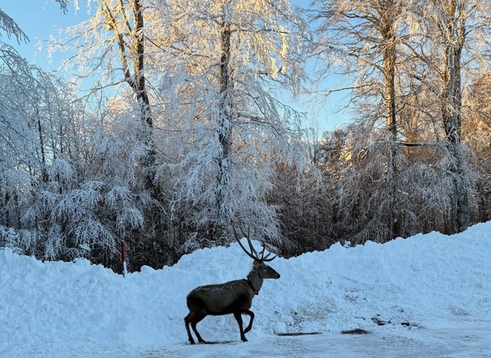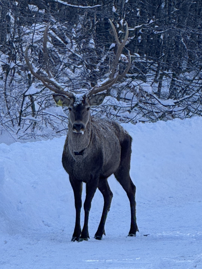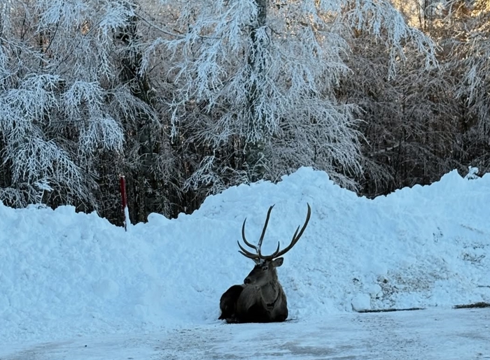 Karla kaplı yaylada gezen kızıl geyik, bölgedeki belediye çalışanı tarafından cep telefonuyla görüntülendi.