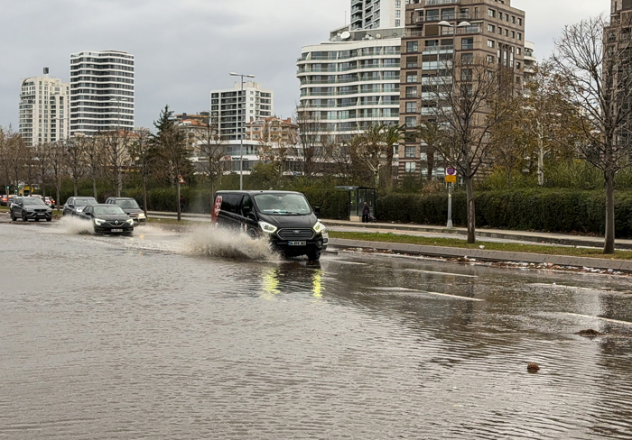 Fırtına nedeniyle Kartal sahilinde oluşan dalgalar sahil yoluna vurdu. Pendik istikametinde seyir halinde olan sürücüler, yoldaki su seviyesinin yükselmesi nedeniyle ilerlemekte güçlük çekti.
