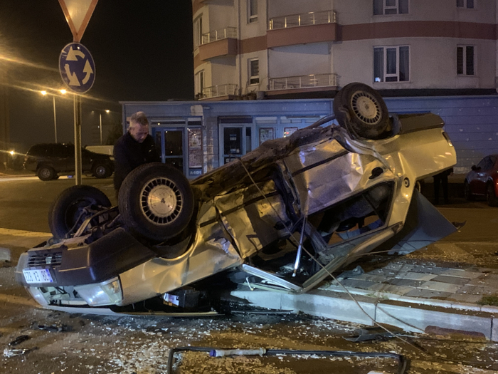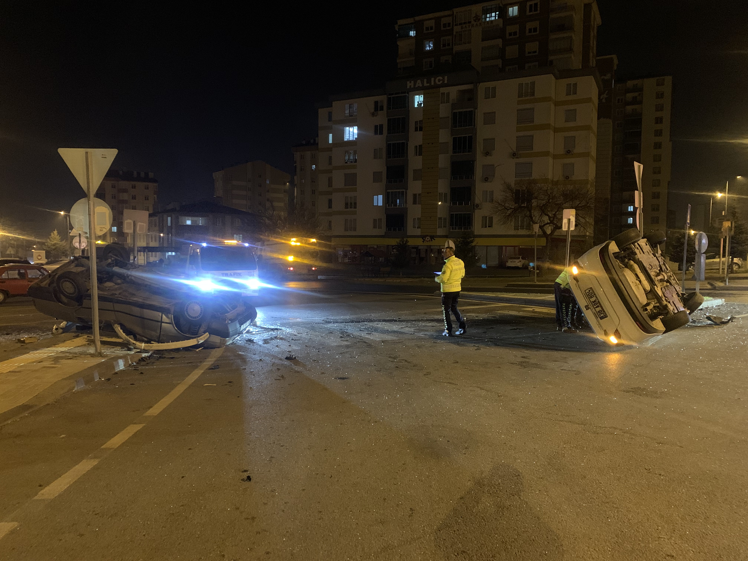 Her iki aracın da ters döndüğü kazada, yaralılar otomobillerden çıkarılarak hastaneye kaldırıldı.