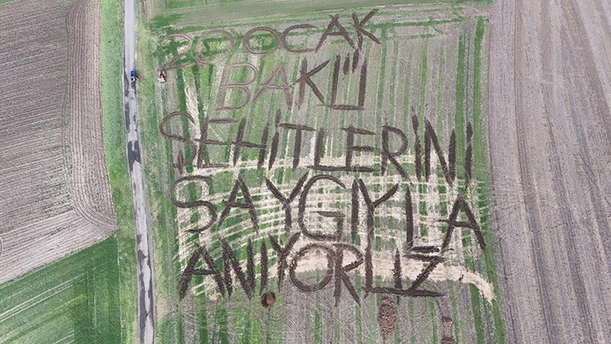 Kırklarelili çiftçi tarlasına "20 Ocak Bakü şehitlerini saygıyla anıyoruz" yazdı