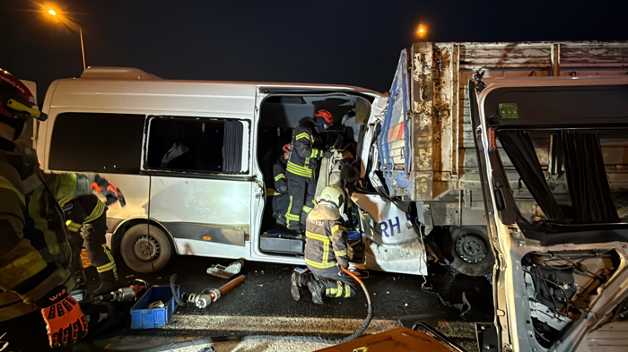 S.K. idaresindeki 34 LRH 551 plakalı servis minibüsü ile A.C. yönetimindeki demir saç yüklü 34 DPE 43 plakalı kamyon, otoyolun Gebze kesimi Kuzey Marmara Otoyolu bağlantısında çarpıştı.