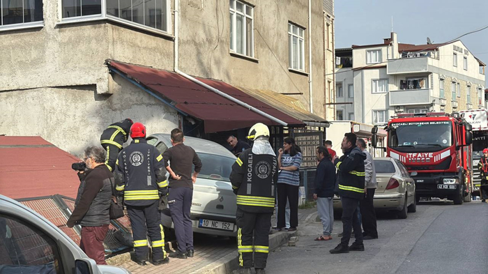 Kocaeli'nin Gebze ilçesinde kaza yapan otomobilin çatısına düştüğü ev tedbir amacıyla boşaltıldı.