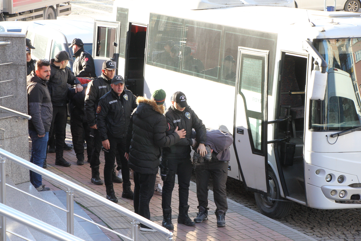 Kocaeli Adliyesine getirilen zanlıların savcılık sorguları sürüyor.