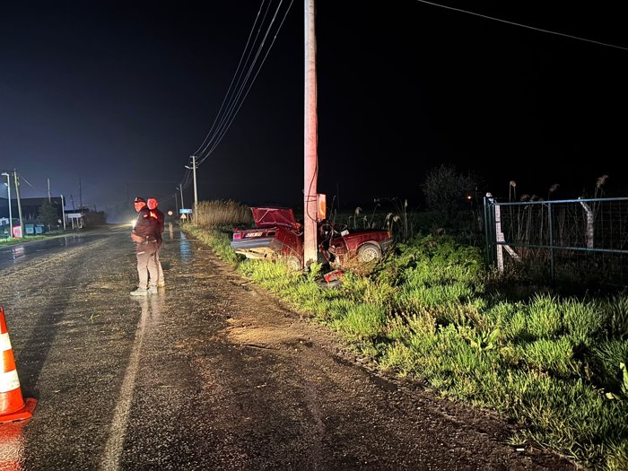 Kütahya'da beton direğe çarpan otomobilde 1 kişi hayatını kaybetti, 1 kişi yaralandı
