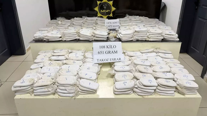 Mersin polisinin Milli İstihbarat Teşkilatı desteğiyle gerçekleştirdiği uyuşturucu operasyonunda, piyasa değeri 33 milyon lira olan 108 kilo 651 gram takoz esrar ele geçirildi. Operasyonda yakalanan yabancı uyruklu şüpheli mahkemece tutuklanarak cezaevine gönderildi.