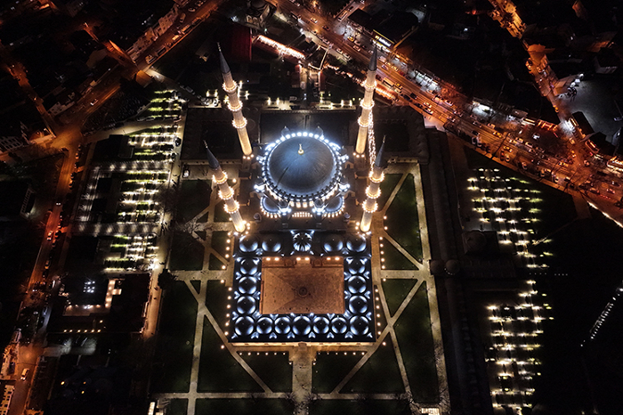 Caminin iç mekanında 845 kandil kullanılırken, dış cephede 1386, iç cephede 270 ve peyzaj alanında 61 aydınlatma ekipmanı konumlandırıldı.