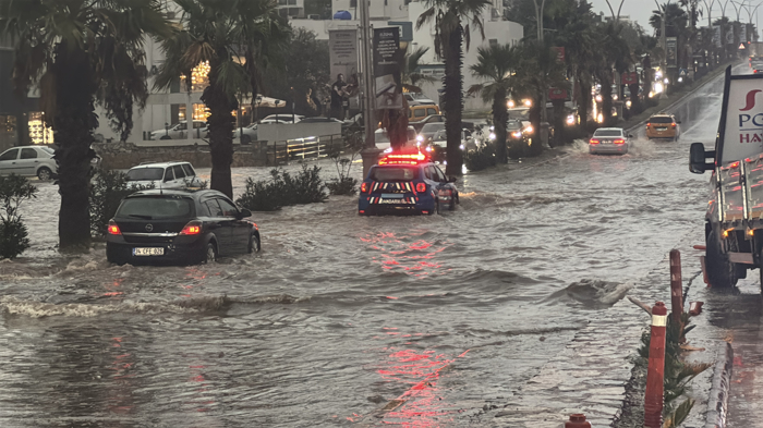 Bodrum'da sabah saatlerinden itibaren şiddetli sağanak etkili oldu. Bodrum-Turgutreis ve Gümbet istikametindeki cadde ve sokaklar göle döndü, bazı araçlar yolda mahsur kaldı.