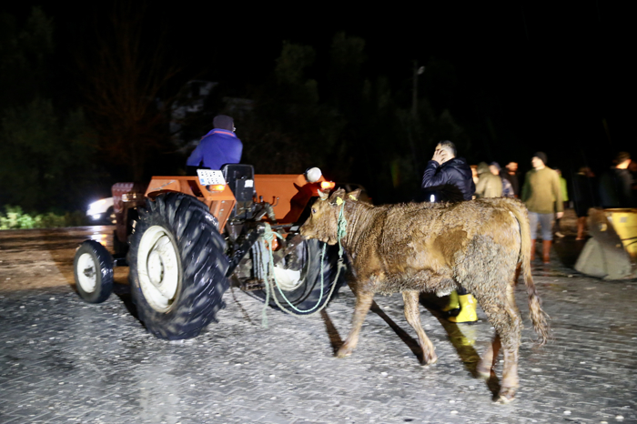 Traktörlerin arkasına bağlanan bazı büyükbaş hayvanlar ise güvenli bölgeye alındı.