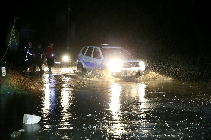Bölgede önlem alan ekiplerin çalışmaları sürüyor.