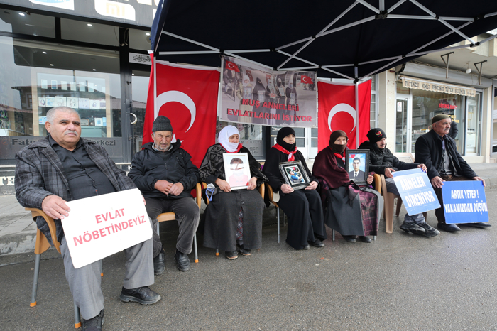 Muş'ta çocukları terör örgütü PKK tarafından kaçırılan aileler, DEM Parti İl Başkanlığı binası önündeki eylemlerine devam etti.