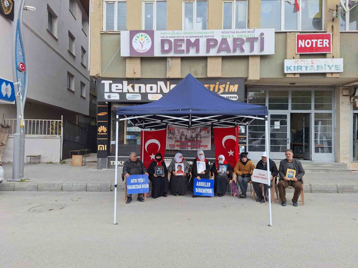 Muş'ta çocuklarını terör örgütü PKK tarafından kaçırılan aileler, her hafta DEM Parti İl Başkanlığı binası önünde eylem yaparak çocuklarının teslim olmasını çağırıyor. Yıllardır haber alamayan anne ve babalar, umutla bekledikleri evlatlarına sesleniyorlar. Bu eylemler, ailelerin evlat hasretine dayanamadıklarının ve çocuklarını geri isteklerinin somut bir göstergesi olarak devam etmektedir.