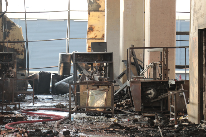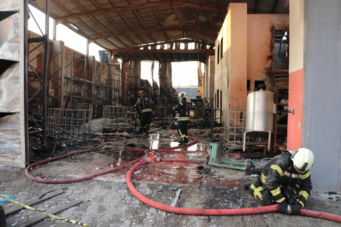 Olay yeri, ekiplerin rahat çalışabilmesi için demir bariyerlerle çevrelendi. Polis, fabrikanın bulunduğu sokağı araç ve yaya trafiğine kapattı.