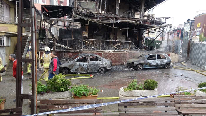 Pendik'te araçtaki yangın çevre binalara sıçradı: 2 araç ve kafe küle döndü