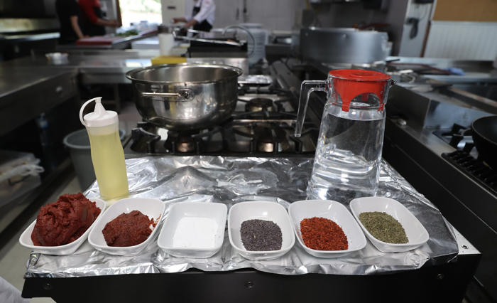 Tuz, karabiber ve pul biber eklenir ve karıştırılır.