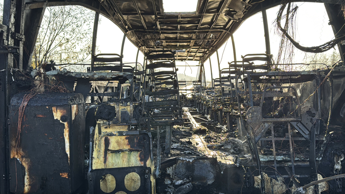 Kısa sürede otobüsü saran alevler, itfaiye ekiplerinin müdahalesiyle söndürüldü.