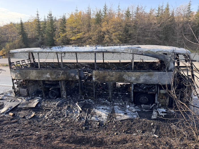 Değirmenci, 200 metre geride araçta koku hissettiğini belirterek, "200 metre sonra durdum. Baktım araç motor kısmından yanmaya başladı. Yolcuları tahliye ettim. İtfaiyeyi aradım. Sağ olsun jandarma, polis, itfaiye ve AFAD geldi. Gördüğünüz gibi araç bu durumda. Herhangi bir can kaybı yok. 30 kişi vardı. Hepsini tahliye ettik, personel de dahil ama aracı kurtaramadık." ifadelerini kullandı.