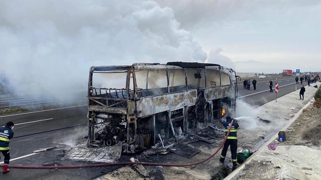 Otobüste 25 yolcu ve 3 personelin bulunduğu, yangında yaralanan olmadığı öğrenildi.