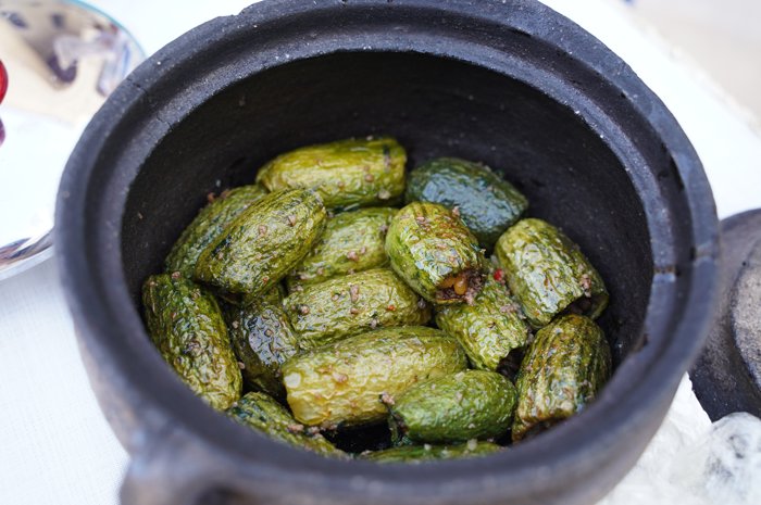 Güneydoğu Anadolu mutfağının geleneksel yemeklerinden şıhıl mahşi, kızarmış acurların içine doldurulan leblebili ve kıymalı harcıyla sofraları süslüyor.