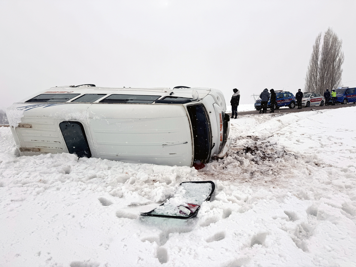 Mehmet Ateş'in kullandığı 58 AHA 260 plakalı öğrenci servisi, Güneykaya beldesi Kargın Mahallesi yakınlarında devrildi.