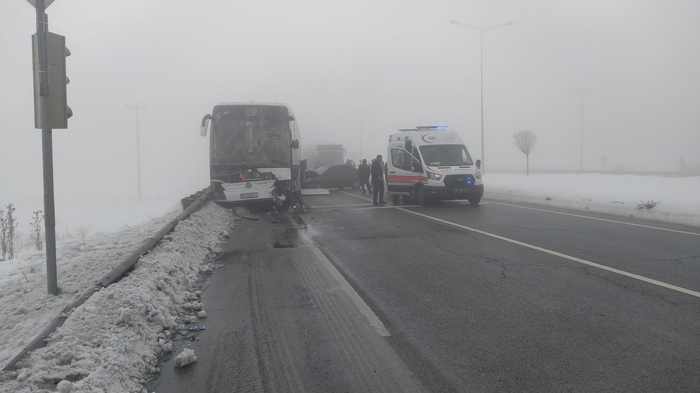 Sivas'ta yolcu otobüsü zincirleme trafik kazasına karıştı. Kazada yaralılar olduğu öğrenilirken, olay yerine çok sayıda ekip sevk edildi.