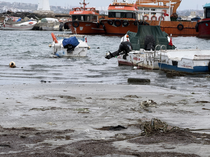 Tekirdağ'ın Marmaraereğlisi ilçesinde deniz suyunun yaklaşık 10 metre çekilmesiyle daha önce su altında kalan alanlar ortaya çıktı.