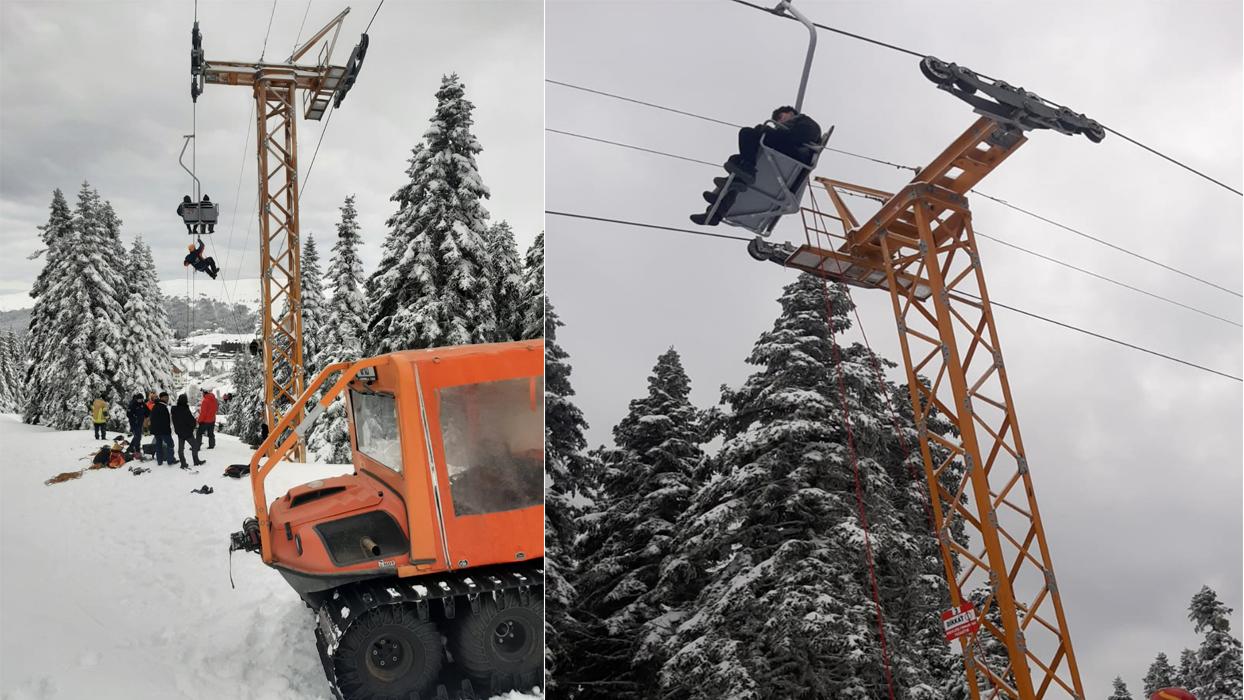Uludağ'da telesiyej paniği! Mahsur kalanlar var