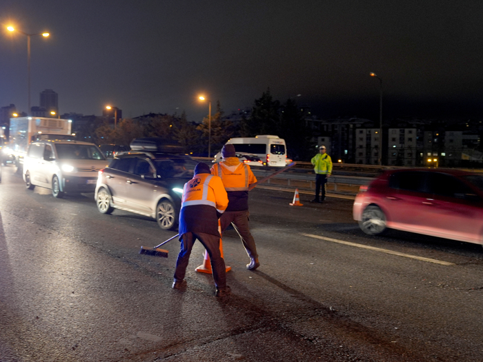 TEM Otoyolu Edirne istikameti Ümraniye Fatih Sultan Mehmet Köprüsü ayrımında 8 aracın karıştığı zincirleme trafik kazası meydana geldi.