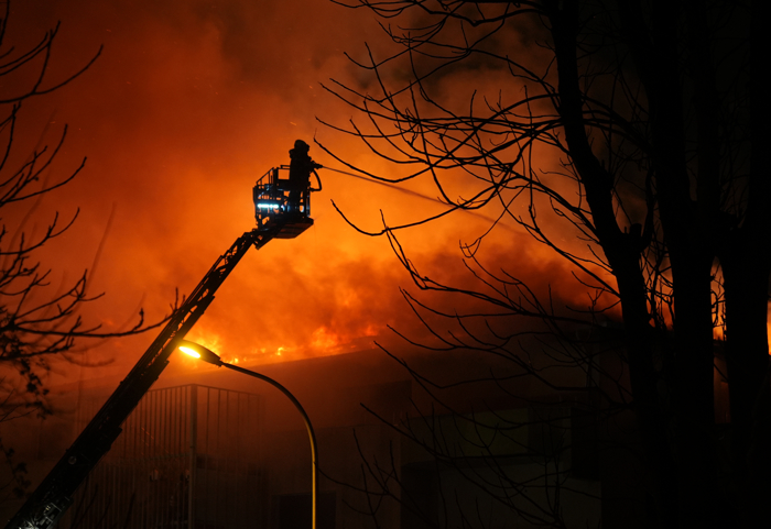 Burhaniye Mahallesi Şeyh Şamil Sokak'ta 7 katlı metruk binanın çatısında henüz bilinmeyen nedenle yangın çıktı.