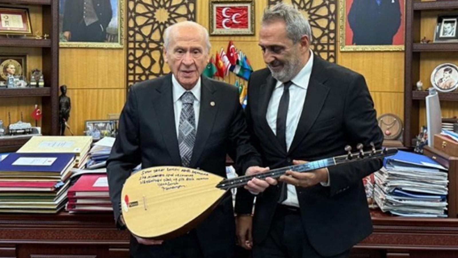 MHP Genel Başkanı Devlet Bahçeli, sanatçı Yavuz Bingöl'ü makamında misafir etti.