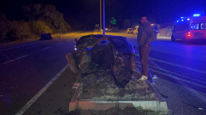 Çarpmanın şiddetiyle araç ikiye bölündü.