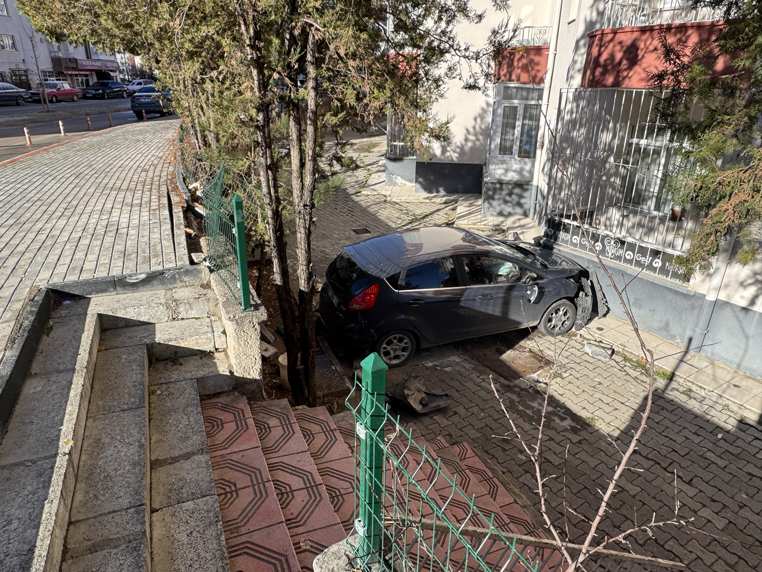 M.Y. yönetimindeki 06 DNH 14 plakalı otomobil, Köseoğlu Mahallesi Mehmet Akif Caddesi'nde kontrolden çıkarak yaklaşık 2 metre yükseklikten apartmanın bahçesine düştü.